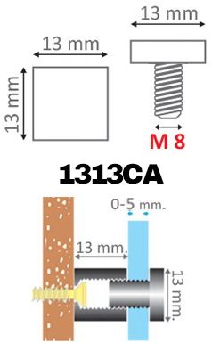 Distanziali 1313 realizzato in alluminio, consentono il montaggio di pannelli e targhe di diversi formati. Ideali per la segnaletica interna, targhe, pannelli, poster. Per il montaggio non necessitano di chiavi a brugola. Basta avvitare la testa sul distanziale e la targa è posizionata.